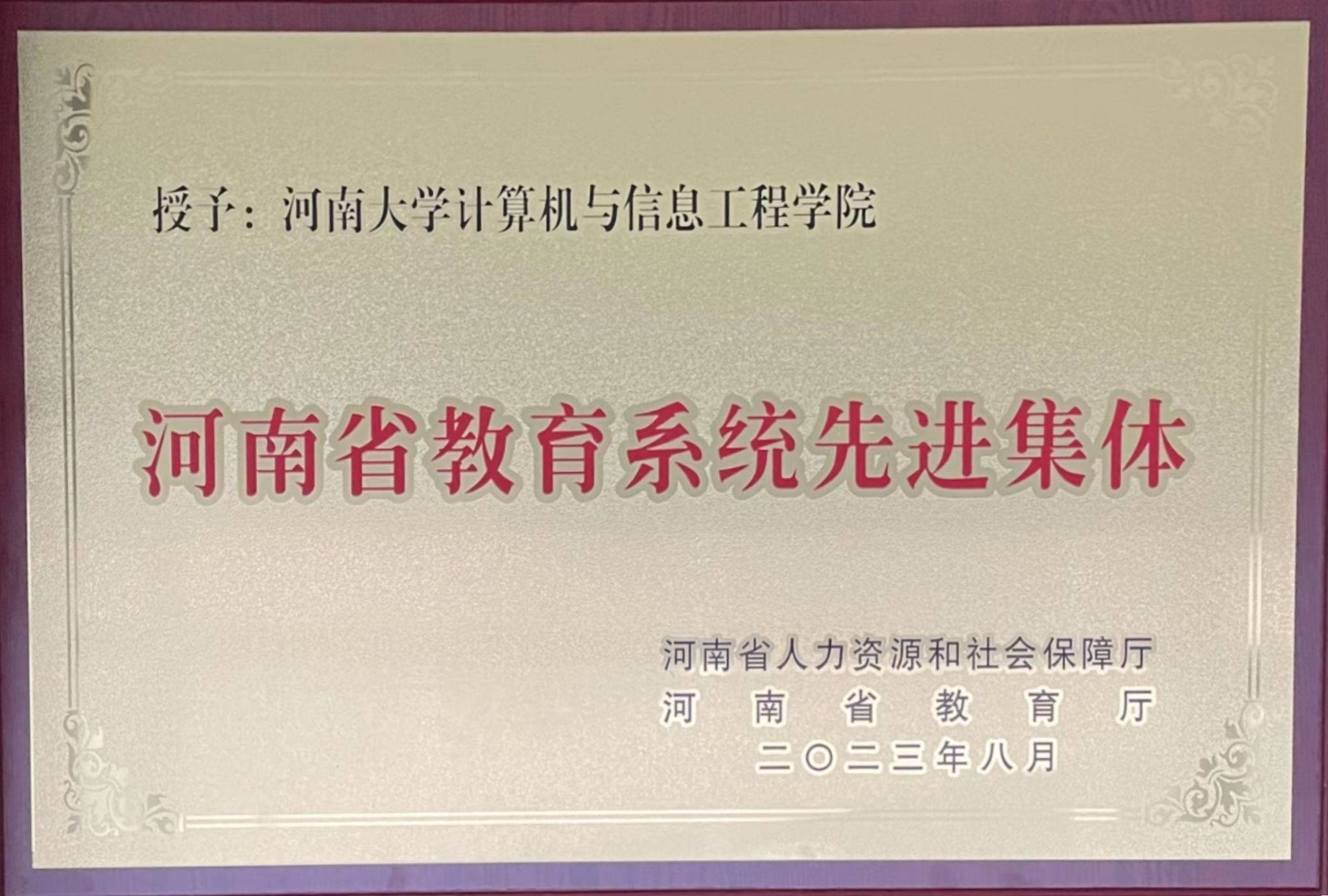 荣获“河南省教育系统先进集体”荣誉称号。