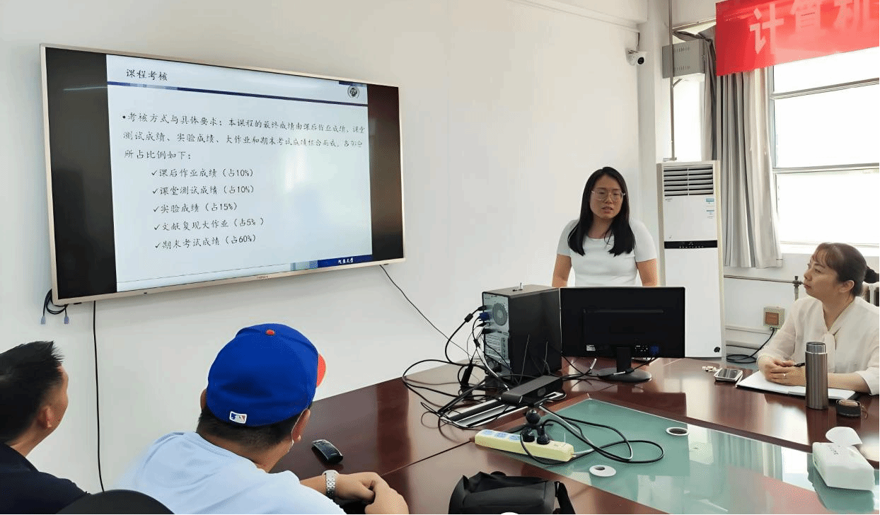 《C++程序设计》课程负责人王建林围绕课程简介、课程目标、课程内容、教材、考核方式、题库建设以及教学支持与配套资源等方面介绍当前程序设计课程建设情况。王建林表示,后续建设过程要持续完善题库内容,纳入跨学科实践场景课堂,推动竞赛式教学与ACM编程活动进课堂,引入AI辅助编程练习与个性化推荐机制。