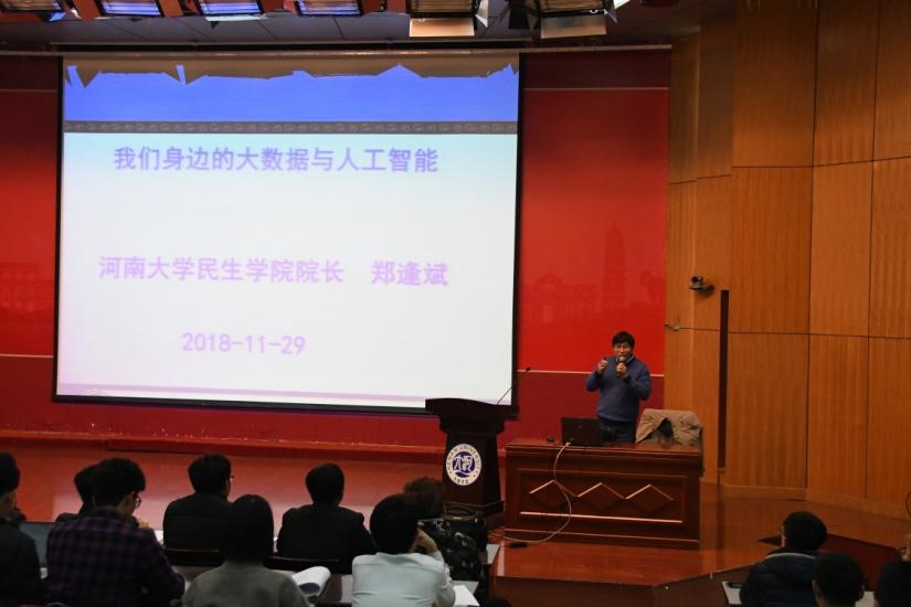 专业学习指导专家讲座在计算机大楼二楼报告厅成功举行,博士生导师、民生学院院长郑逢斌教授为18级全体新生进行“我们身边的大数据与人工智能”讲座。