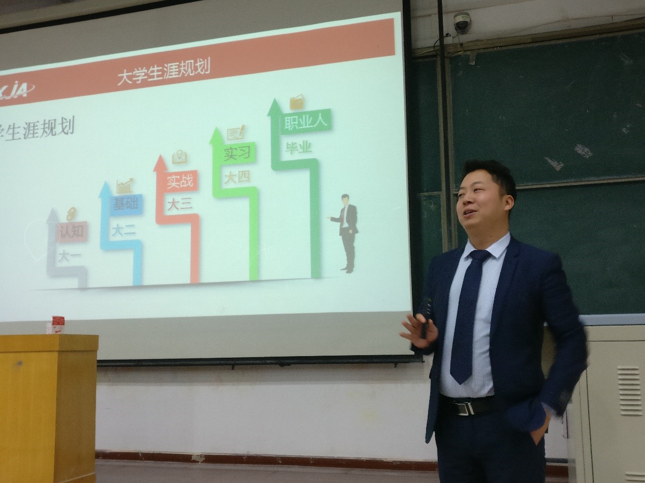 邀请了学佳澳资深职业规划师、企业合作总监、大学生就业管理咨询资深讲师、ARC互联网学院特聘教授汪洋在金明综合楼2306教室为18级新生进行互联网行业认知报告。