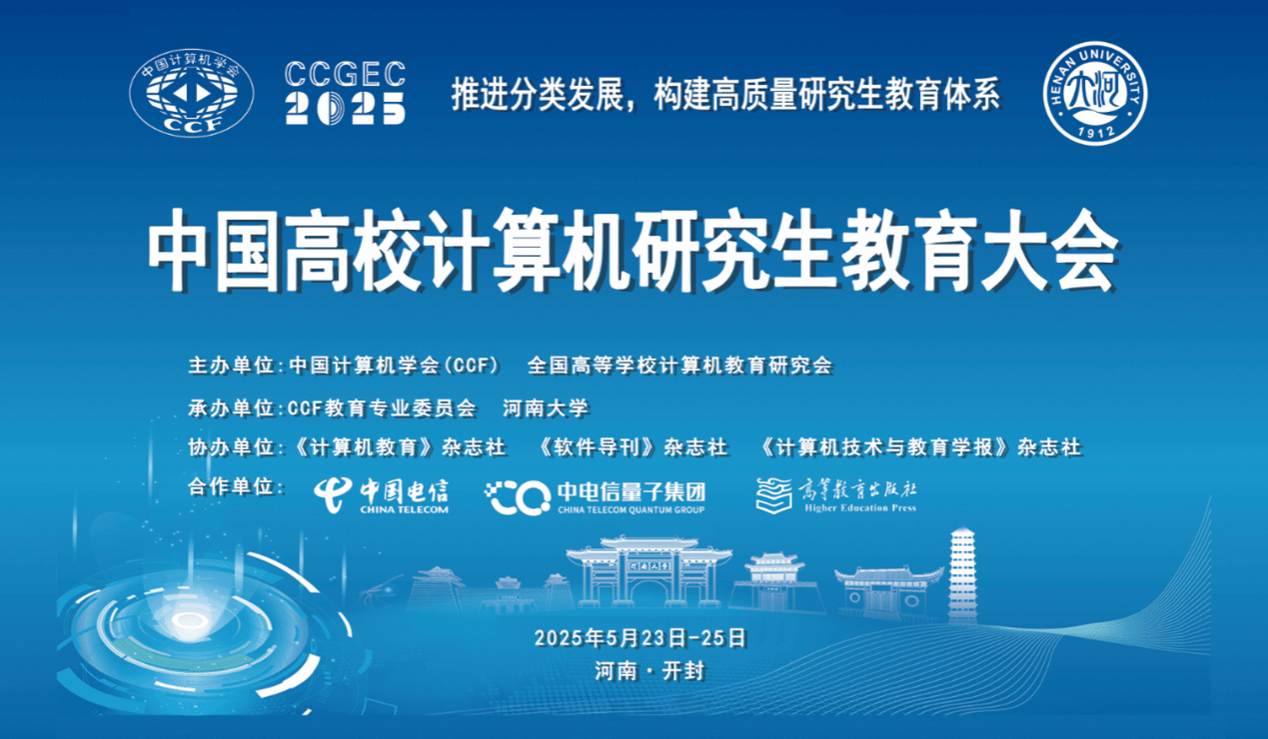 承办的2025年中国高校计算机研究生教育大会(CCGEC2025)将于2025年5月23日至25日在河南开封中州国际饭店举行。本次大会主题为“推进分类发展,构建高质量研究生教育体系”,围绕智能化时代研究生分类培养展开讨论,设置工程硕博士培养、学位点建设、研究生教学成果奖等多个分论坛。本次大会邀请了多位计算机类研究生教育的知名专家学者展开交流研讨,分论坛还邀请了最新一轮获批计算机类博士学位点、研究生教学成果奖的一线专家交流申报经验,诚邀有兴趣的老师参会。