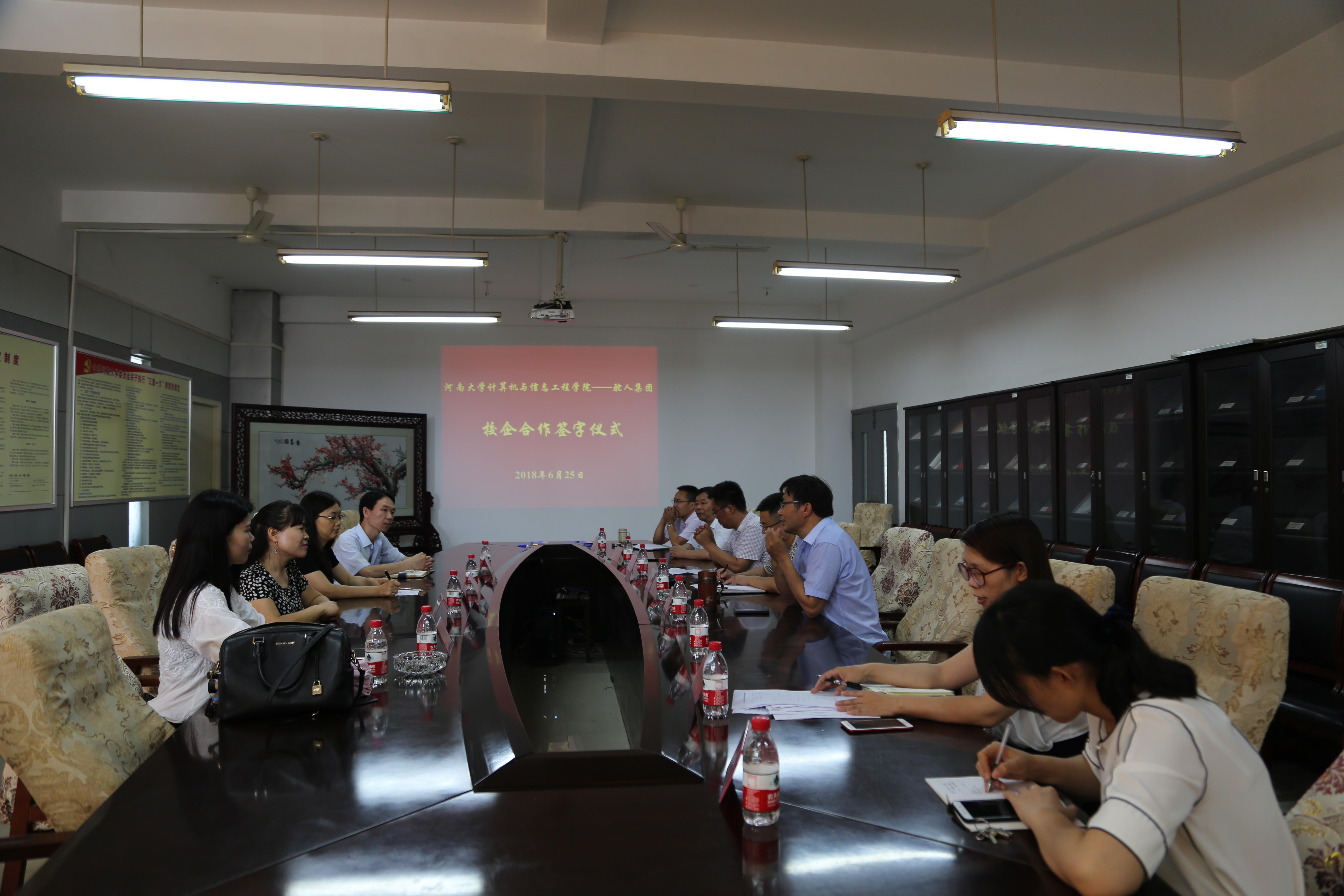 与驼人控股集团有限公司校企合作签字仪式在学院302会议室举行。驼人控股集团有限公司人力资源总监佘翠玲、供应链委员会运作管理部经理张纳、研发与产品委员会自动化中心主任李新东、集团人力中心副经理张利聪以及麻豆社