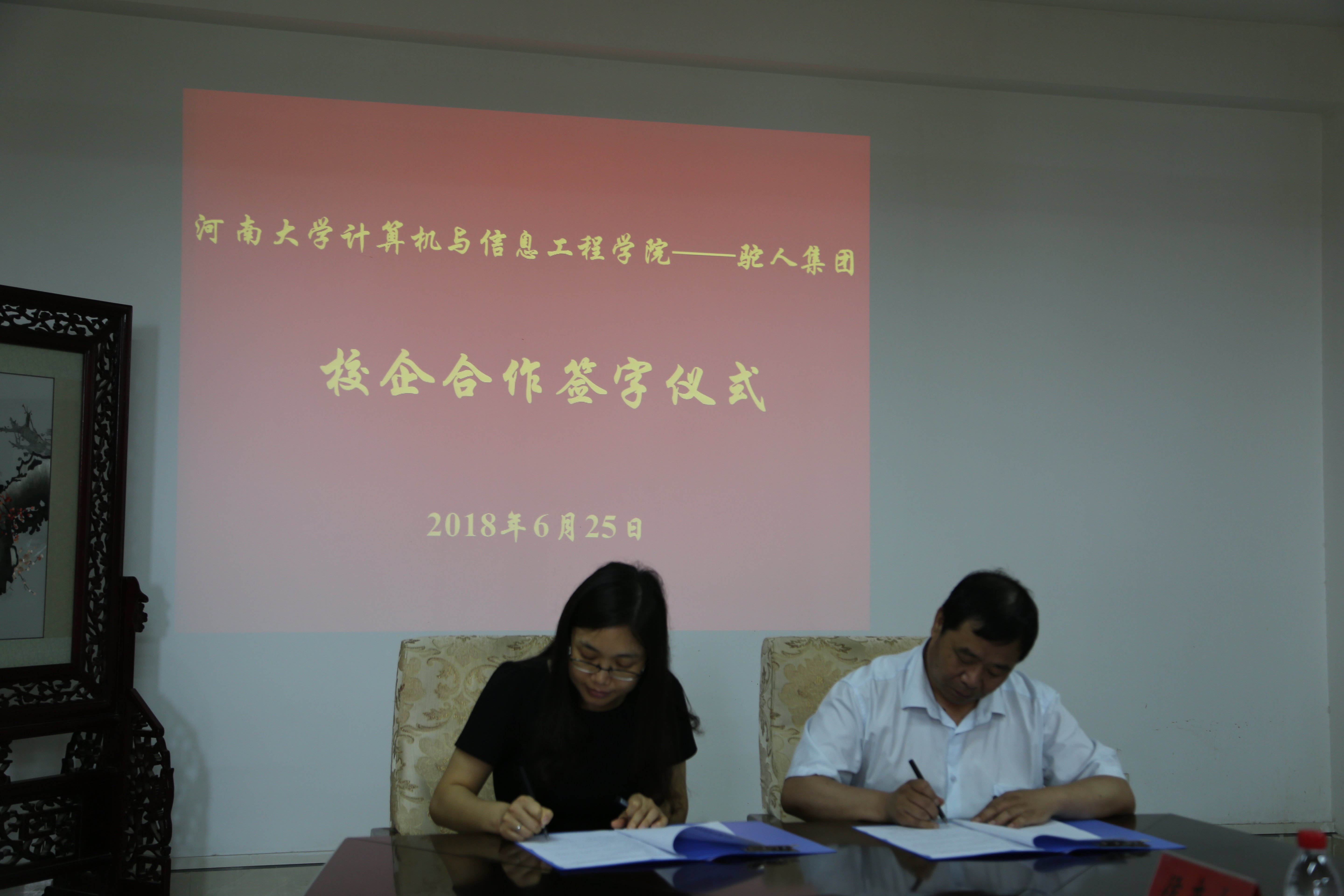 副院长马骏教授代表学院与驼人控股集团有限公司人力资源总监佘翠玲就双方校企合作进行了签约。此次签约标志着双方校企合作的正式开始,根据协议,双方将在人才培养、学生实习实训就业、人员交流、教学科研等多领域开展广泛的合作并带动双方共同发展。