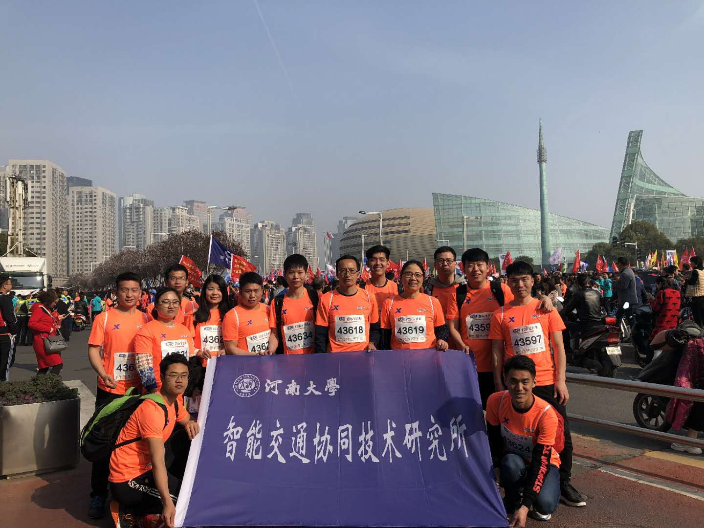 “智能交通协同技术研究所”代表队激情洋溢,参加了五公里马拉松项目。研究所张延宇老师和李伟老师带领研究生团队,身着橙色上衣,挥舞蓝色旗帜,英姿飒爽,彰显团队凝聚力与协作精神。领队周毅老师也号召大家“跑出团队气势,跑出精气神,2018跑出新的成就”。比赛结束后,团队成员感触颇深,坚持跑好每一步,不畏艰难,才能创造奇迹。周毅老师鼓励大家,今后马拉松比赛要成为研究所的常态化活动,争取每年都能参加,提高团队活力,保持最昂扬的斗志,同时也把马拉松精神融入到科研工作中来,取得新的辉煌。