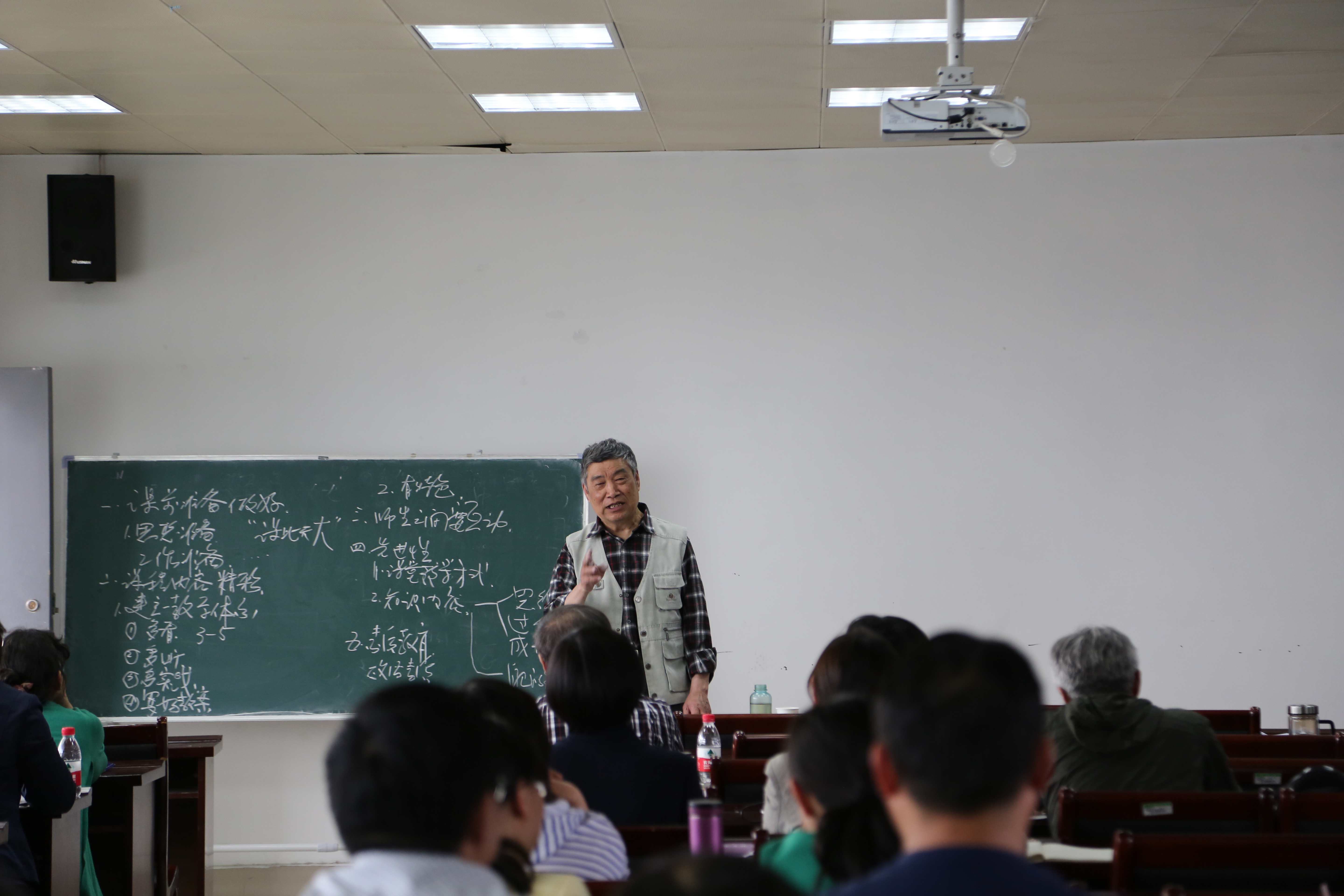 情况作出相应的安排。之后,又关于上课进行了讨论。他提出上课分为三部分,第一部分最为重要,是提出问题,这时要做到启发式互动;第二部分是解决问题,这是一个难点,需要重视,会议所提出的提升式互动对这一部分有很好的帮助;第三部分是检验结论,结论的检验放在课堂的互动之中,更能让学生们记忆深刻,对学习有着不小的促进作用。