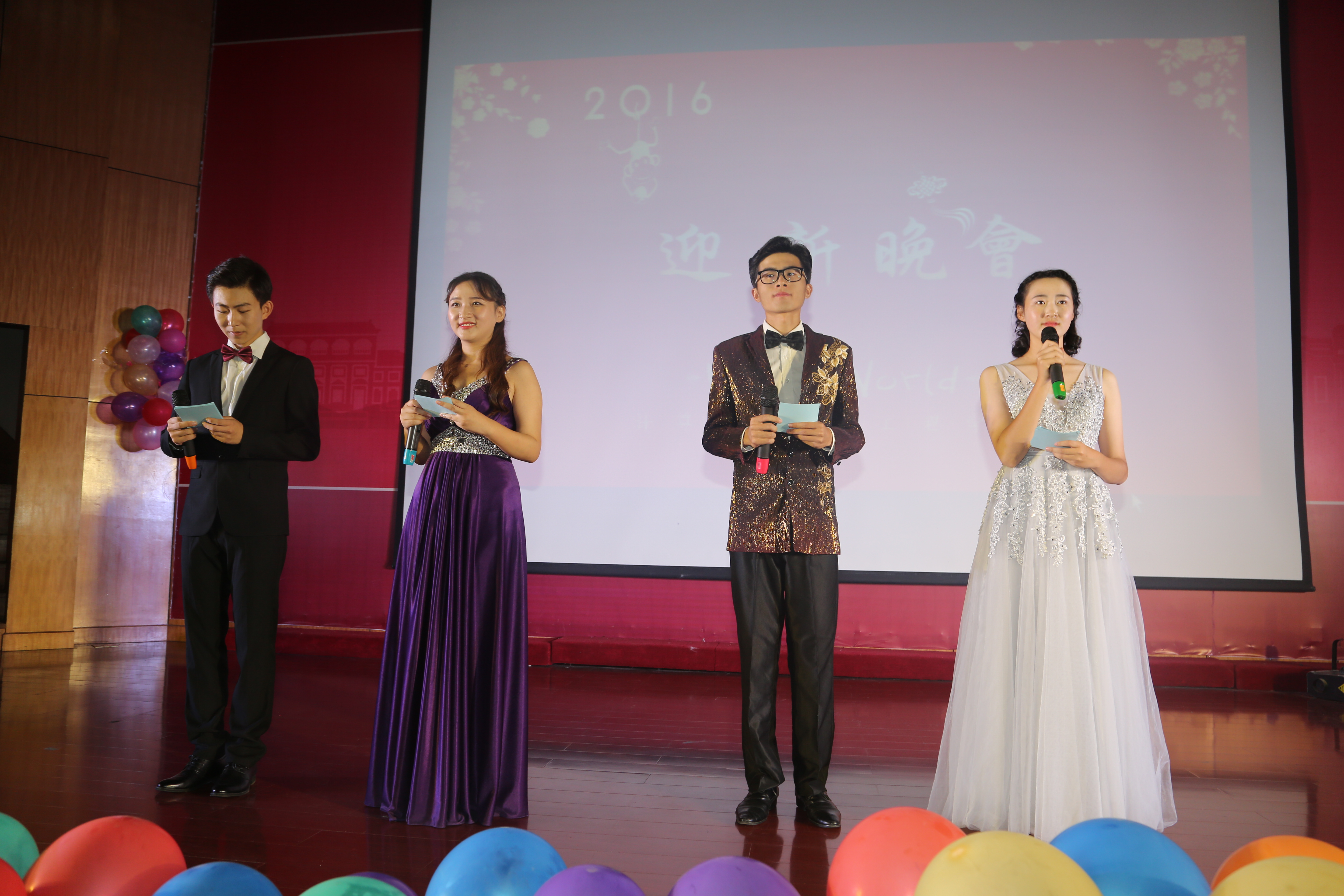 开幕初始,首先播映了一段欢快的军训纪录短片,展现出石榴们的飒爽英姿。伴随着追光灯亮起,晚会正式开始。一支诙谐轻松的开场舞《咋了爸爸》将观众们引入到欢快的气氛中,随后歌曲《IF YOU》伴随着美丽气泡将大家带入另一种和谐的浪漫中,古筝独奏《女儿情》又给舞台渲染了一抹浓浓的中国风。当然,迎新晚会又怎会少了学姐学长们的倾情加盟呢?辩论队《男生更寂寞还是女生更寂寞》的针锋相对,小品学霸社与学渣社的激烈对碰,脱口秀《好司机》的自说自话掀起了晚会一个又一个高潮……更有舞蹈,热情奔放;魔术,变幻莫测;歌曲,天籁动听。现场游戏和微博互动环节更是这次晚会最为亮丽的风景线。晚会在新生合唱《最初的梦想》中落下帷幕。2016,小石榴们将在这里启航,这是一条新的起跑线,祝愿他们都能够在未来抵达自己心中的彼岸!