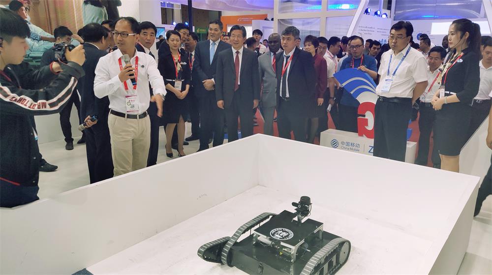 参展的“5G机器人”成果能应对复杂地形,实现智能识别、协同感知和自主决策,可广泛应用于工业生产、抢险救灾、公共安全、军事作战等领域。
