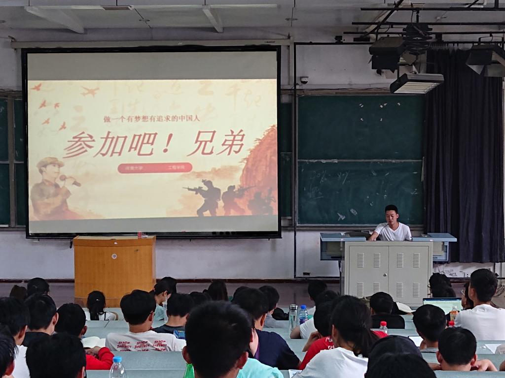 分别在金明综合楼6405教室和2306教室对2017级和2018级本科生举行大学生入伍政策宣传暨动员大会。全体2017级本科生和2018级本科生参加了会议。