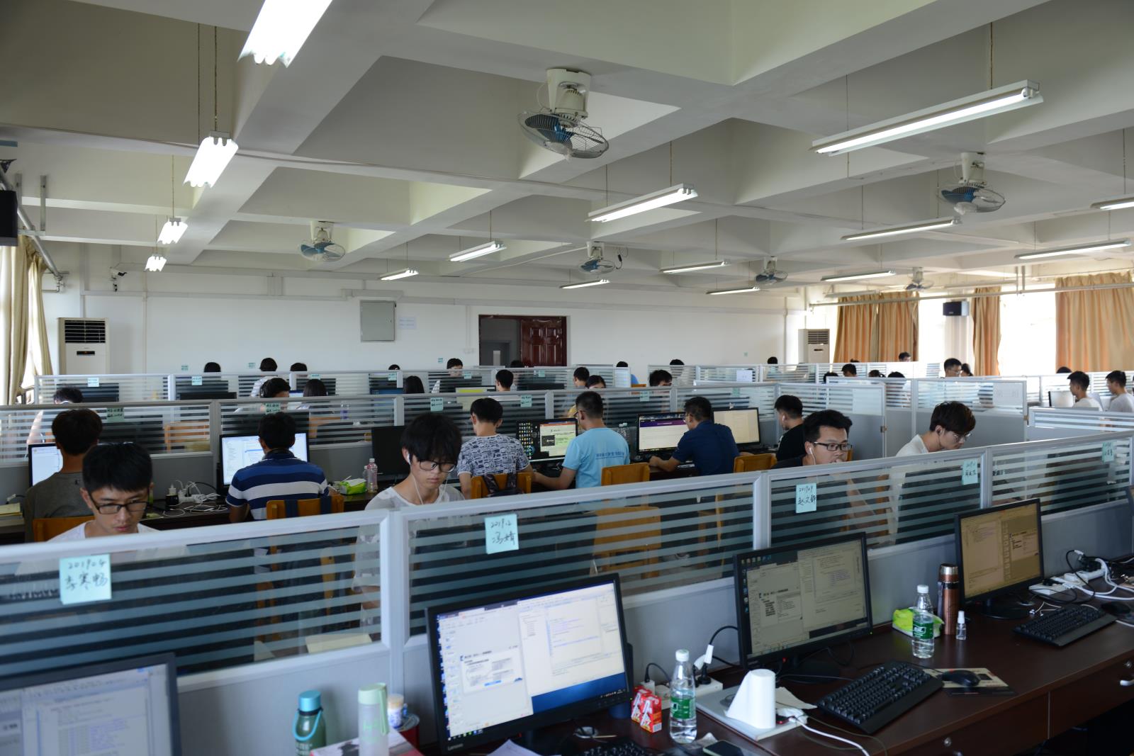 位于曾宪梓楼的河南省大数据双创基地仍正常开放。老师和同学们在高温酷暑的夏天继续着科研工作与日常学习,展现出了麻豆社