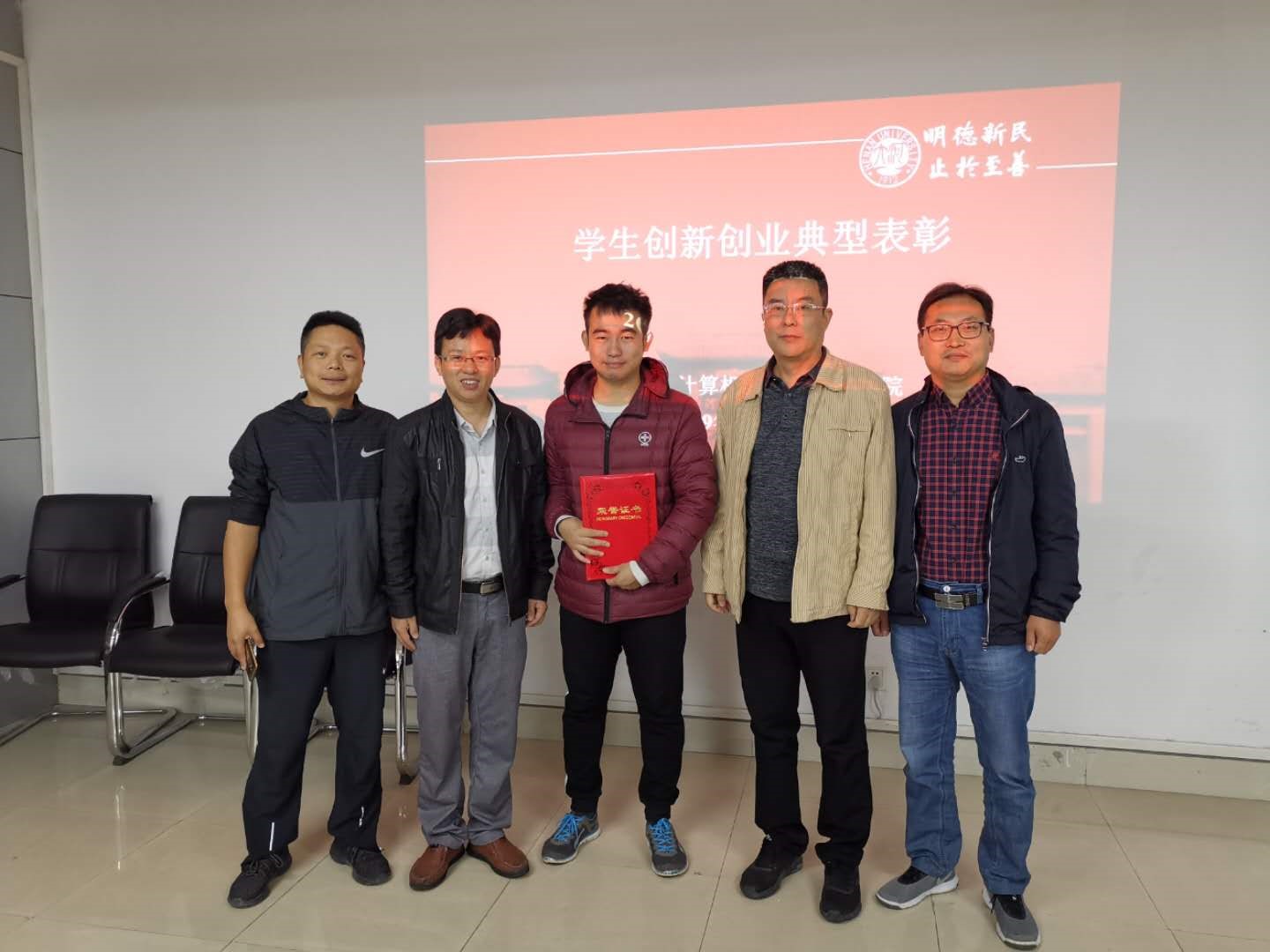 302会议室举行了大学生创新创业典型表彰会,针对在校期间能够坚持不懈,自主创新,勇于拼搏的16级网络工程专业吴雪铭同学进行了表彰,学院党委书记吕冰,院长乔保军、副院长韩道军以及相关指导教师到会参加,会议由韩道军主持。