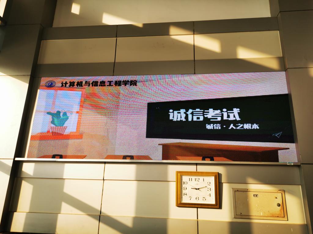 宣传教育从学院、年级、班级层面分别展开。学院制作电子宣传海报,在学院大厅电子屏滚动播放,并通过微信公众号推送诚信考试相关内容;2017级召开年级“诚信考试动员大会”;2018级组织学生进行诚信考试宣誓并签订承诺书;2019级组织召开主题班会进行诚信考试教育。