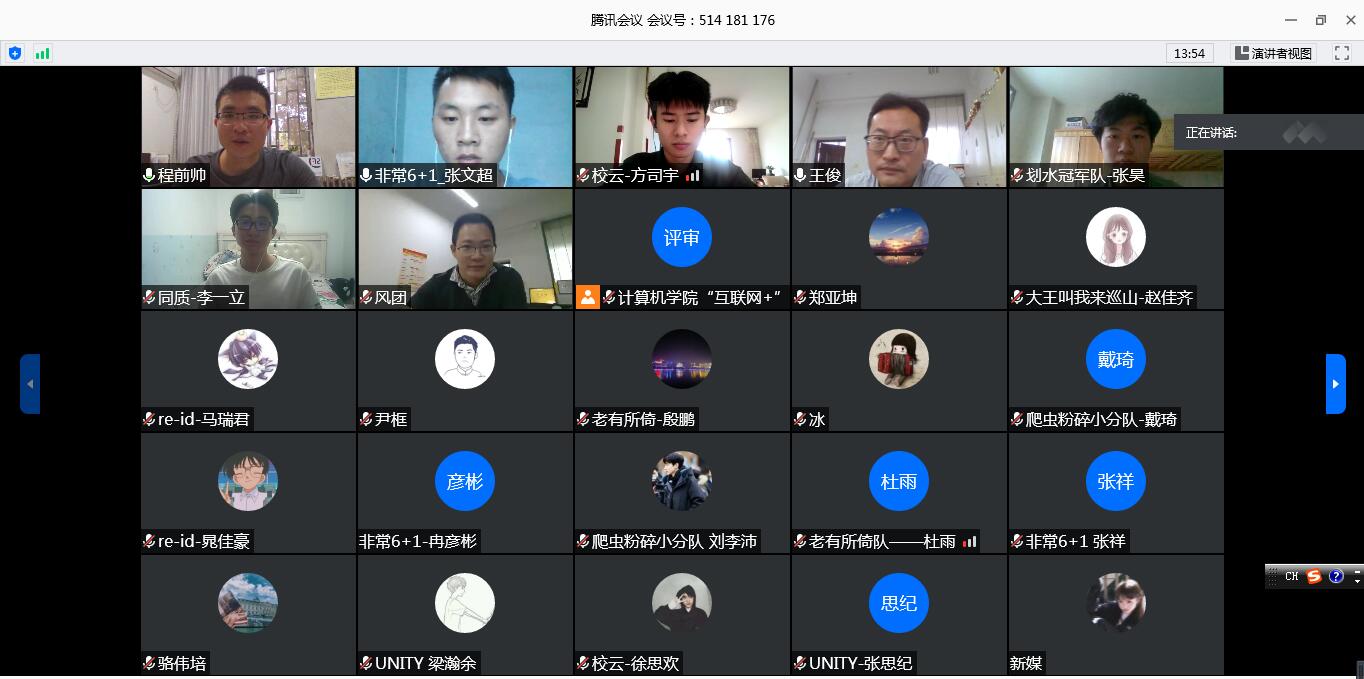 “互联网+”大学生创新创业大赛通过腾讯会议在线成功举办。学院副教授王俊老师、副教授杨伟老师和团委书记程前帅老师担任评委,12支参赛队伍参加了比赛。