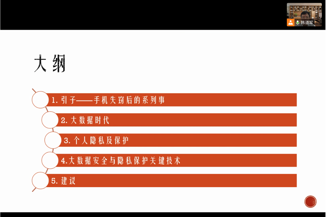 韩道军老师为大家讲解在大数据时代的背景下大家应该如何看待自己的隐私保护问题