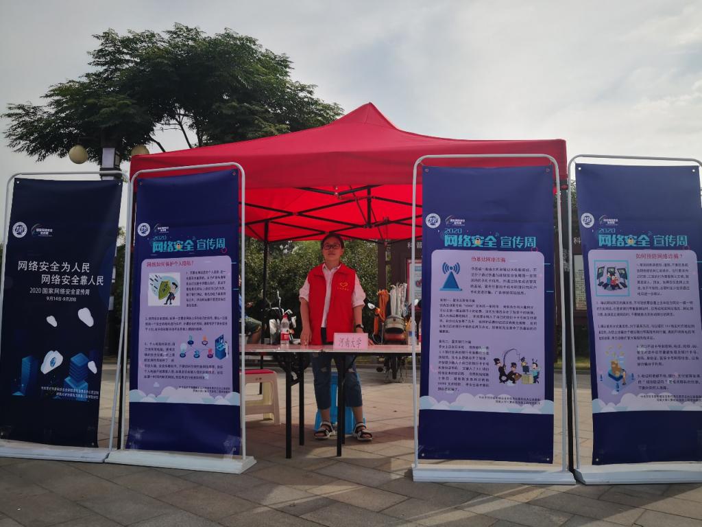 金明校区正式启动科普志愿者活动,此后连续一周深入开封市社区进行网络安全宣传活动。并于9月17日上午全国科普日期间,在开封市科普主题广场参与开封市科普活动,取得了良好反响。本次主题科普活动作为2020年国家网络安全宣传周系列活动的一部分,活动内容紧密围绕“网络安全为人民,网络安全靠人民”主题,结合河大师生及社会公众关注的热点和日常生活中关心的问题,从网络安全法、计算机使用安全、信息安全、移动支付安全等多个贴近实际、贴近生活、贴近群众的方面进行网络安全科普知识宣传。本次活动旨在增强全校师生和广大人民群众的网络安全意识,全面提高网络素养,营造网络安全人人有责、人人参与的良好的氛围,让“网络安全为人民,网络安全靠人民”的理念深入人心。