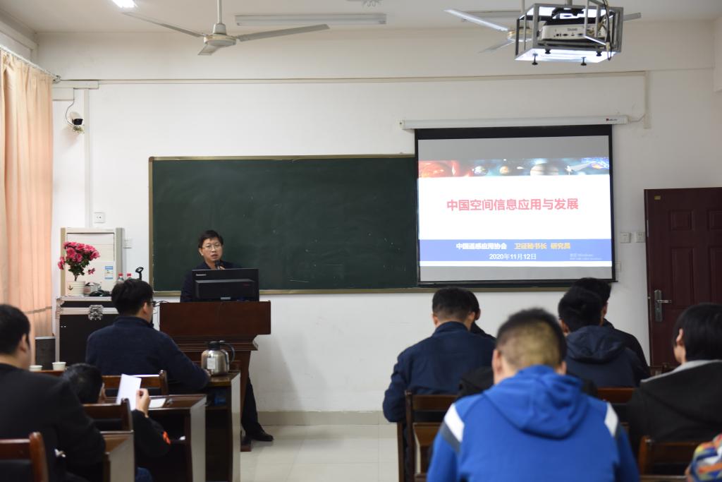 11月12日上午,中国遥感应用协会秘书长卫征研究员在曾宪梓楼二楼会议室做主题为“中国空间信息应用与产业发展”的学术报告会,学院部分老师及研究生参加会议,报告会由高分河南中心总工兼高分开封中心主任周珂主持。