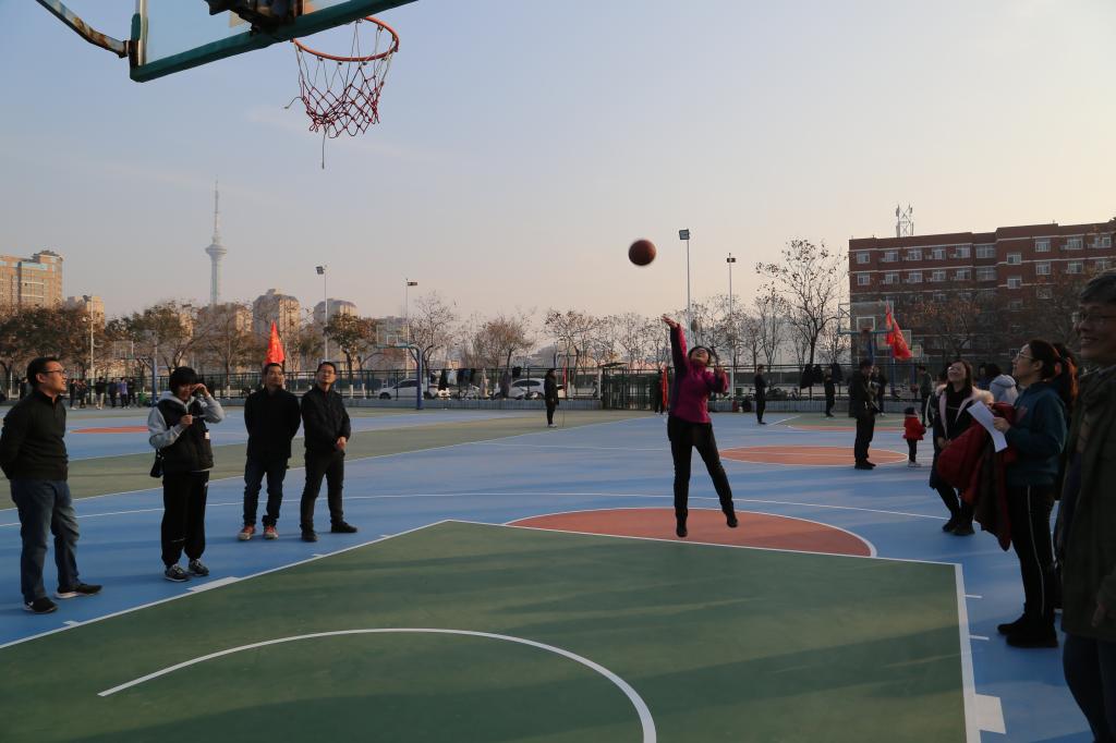 在“赶羊穿林”轻松快乐的氛围中,套圈比赛开始了,看似简单的套圈,难度系数可不低,教师们认真的投,分析小圈运动轨迹,玩的不亦乐乎。与此同时投篮比赛也在进行着,教师们沿三分线自主围成了半圆。参赛老师拿到篮球就按耐不住激动的心情、跃跃欲试,他们全力以赴、一丝不苟,一点点地增加着比赛积分。