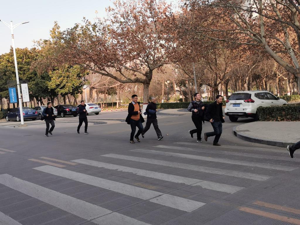 下午2:30,全体老师在学院门口集体拍照留念。随后,第一个项目环校慢跑正式开始,从学院门口出发,教师们围绕金明校区主干道,向终点奔跑,一路上有学生志愿者摇旗助威。教师们在阳光下挥洒汗水的场景,不仅展现了激情活力的一面,更体现了他们对生活的热情。