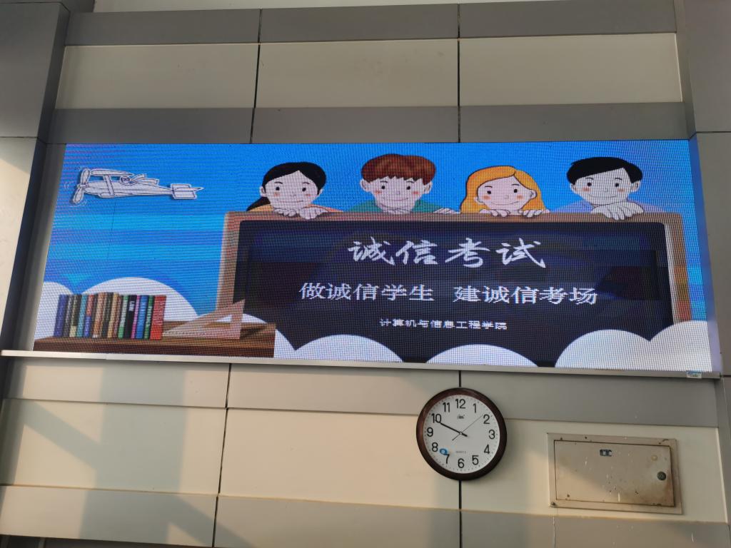 考前,学院各年级召开诚信考试动员大会,及时传达学校有关考试规定以及考试违纪处分条例等,利用电子屏、QQ群、微信群等宣传诚信考试内容,敦促同学们做诚信学生,建诚信考场,展示良好大学生形象。