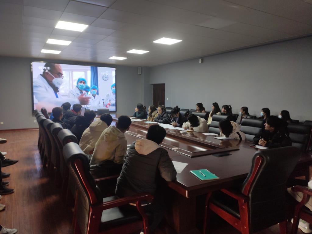 全体党员和入党积极分子共同学习中国工程院院士钟南山和金银潭医院院长张定宇在今年新冠肺炎疫情初期不顾个人安危,奔走上抗击疫情第一线的事迹。他们的事迹充分体现了不惧挑战、冲锋一线的战斗精神,坚守职责、迎难而上的担当精神,倾心付出、永不言累的奉献精神。这是伟大抗疫精神的生动诠释,同时也彰显了抗疫成果的来之不易。