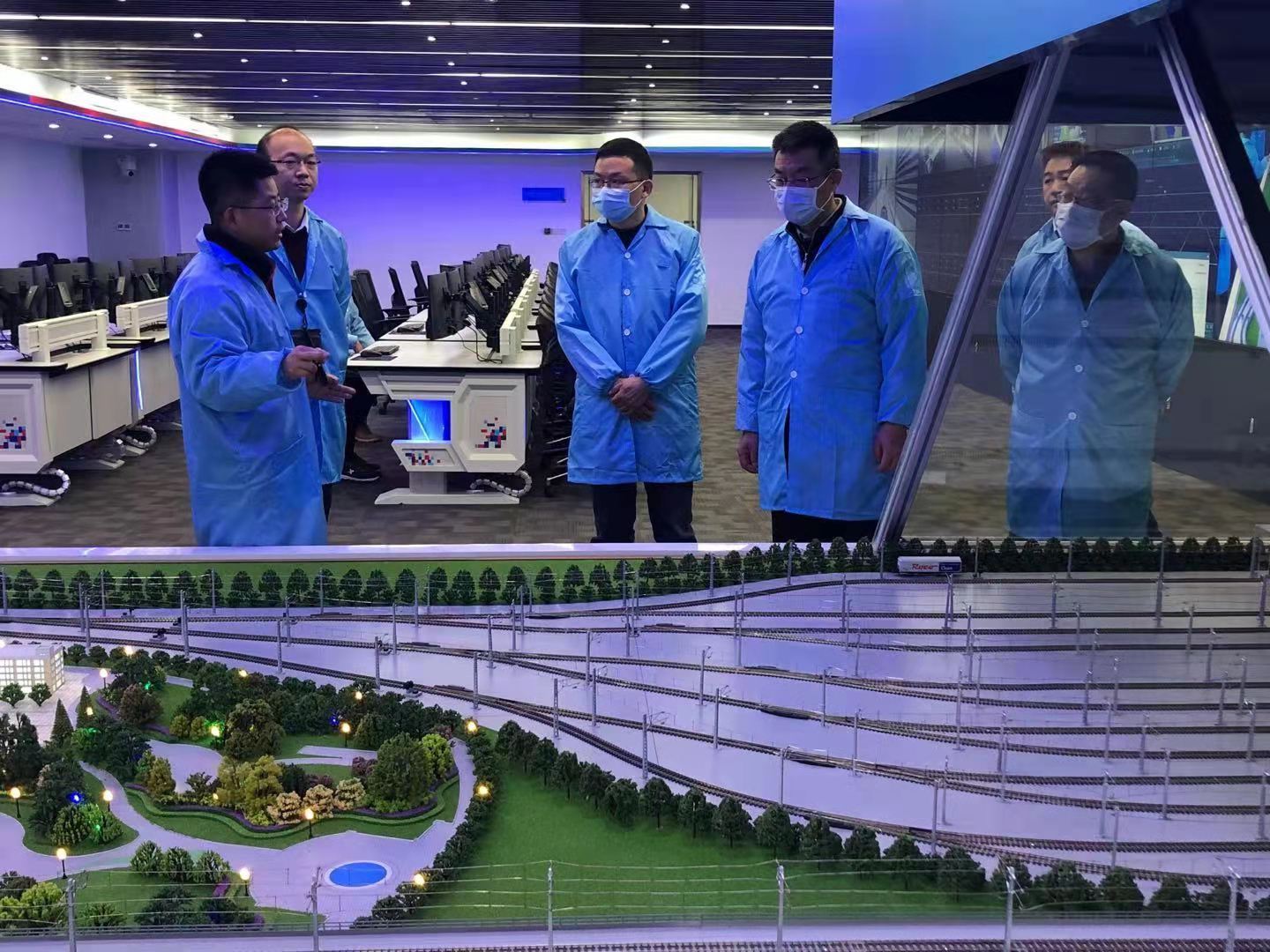吕冰一行参观了卡斯柯信号(郑州)有限公司科研环境和高可信智慧城轨研究中心,观看了公司主要业务介绍、智慧城轨信号系统展示、沙盘模拟和并且体验了实车模拟操作等。
