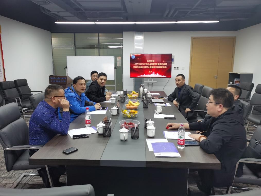 参观结束后,刘扬、张磊、周黎鸣老师与CCF Yocsef郑州AC委员孙国英、王广峰、徐国愚等人在数研院会议室展开了专题讨论。同时还有来自郑州和河南各界的其他专家人士,如大专委委员、郑州大学案例中心主任王千副教授,建设银行产业园金融专家丁行长,德恒律所、股权上市专家赵文明律师等人。各位与会专家深入了解了数研院的定位,探讨如何与数研院展开科研、教育等项目合作,河南省和郑州市相关大数据产业发展的现状及建议等问题展开了深入讨论,达成了进一步深入合作共同发展的共识。