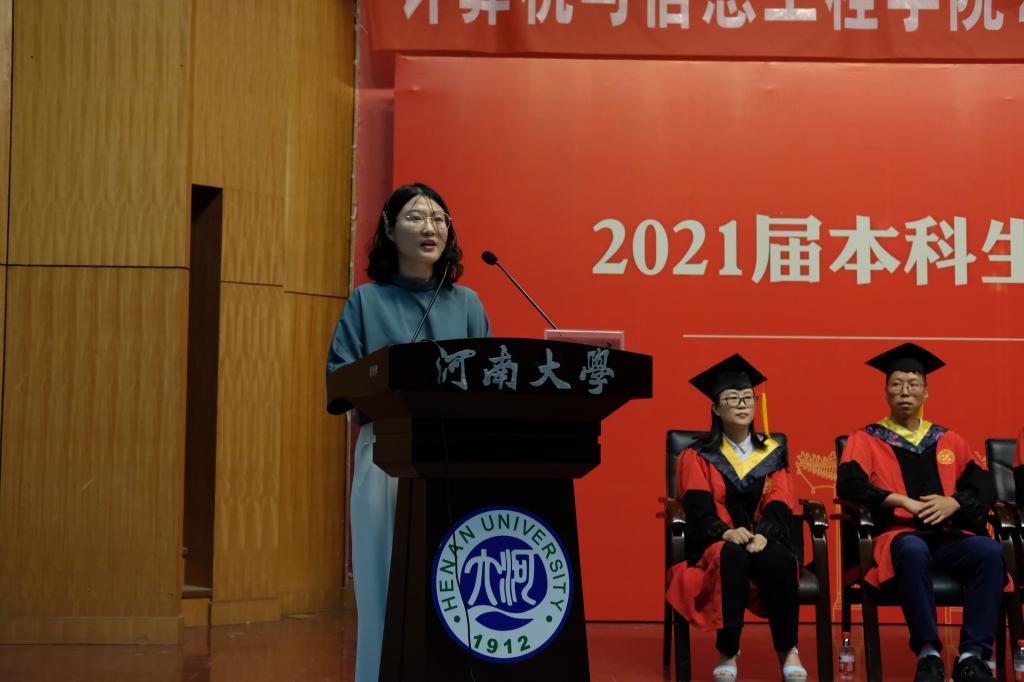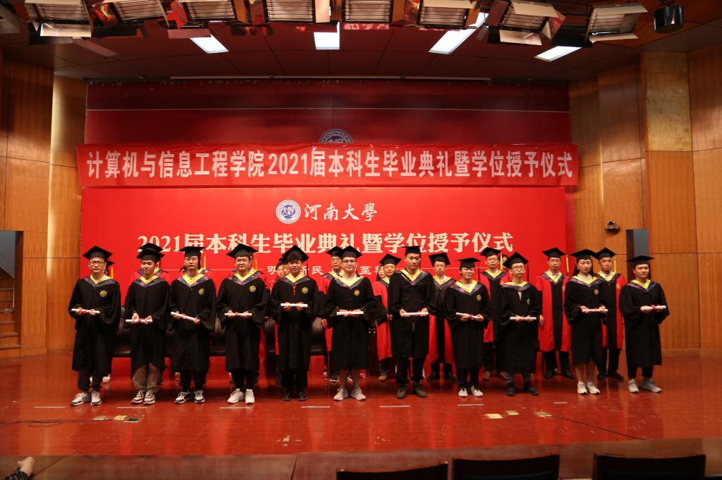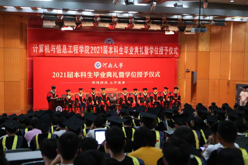 2021届本科生毕业典礼暨学位授予仪式在计算机大楼二楼报告厅举行。全体学院领导、学位评定委员会成员、教师代表及全体本科毕业生参加典礼,毕业典礼仪式由副院长柯杨主持。