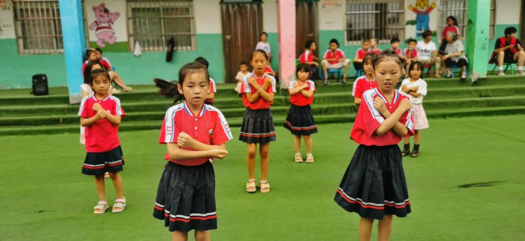 在进行了为期6天的教学过后,7月18日上午10点整,孩子们为之付出时间、精力筹备的合唱与舞蹈节目在谷营小学内进行展演。一段段练习已久的旋律,一句句背诵已久的歌词、一个个烂熟于心的动作,孩子们自信且有力地将其表演而出,铿锵有力,活力四射。在观众席中的家长们,看着自己的孩子在努力去学习,努力去改变,脸上无不洋溢着欣慰的笑容,同时这也是对志愿者们支教效果的肯定。随着展演的顺利举办,麻豆社