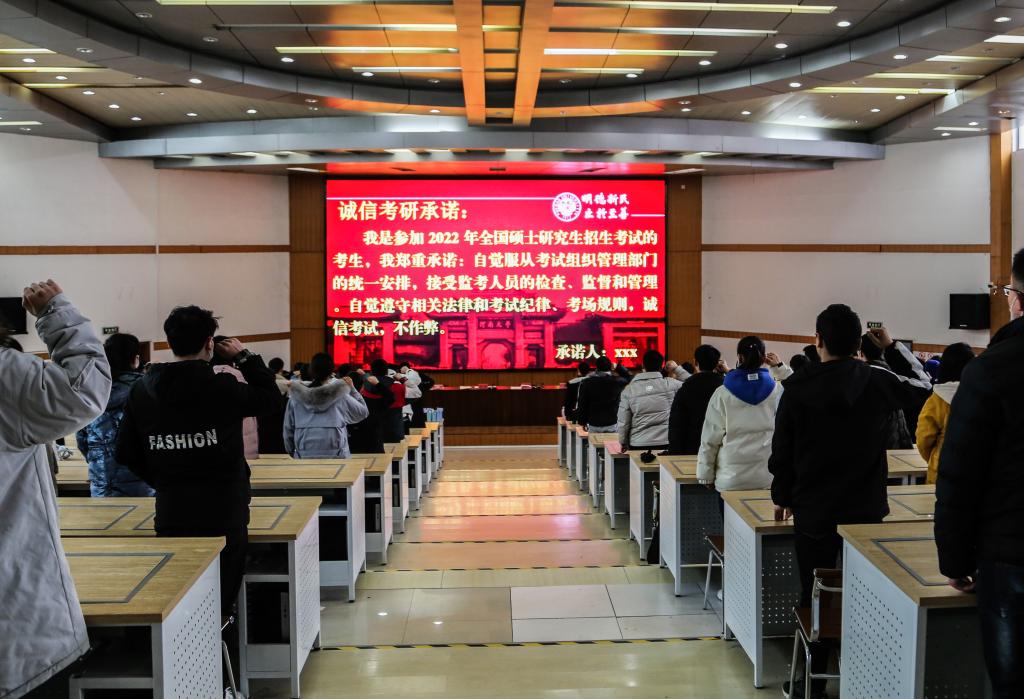 辅导员姚莉鼓励考生放下包袱、树立信心,以平常心对待,沉着冷静应考。2022届本科生代表郭方帅带领全体考生庄严宣誓,庄重承诺远离作弊、诚信考试。