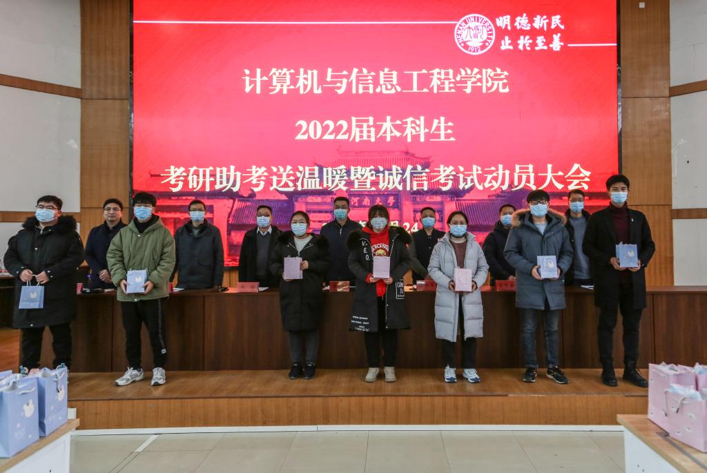在计算机大楼201教室举行2022届本科生考研助考送温暖暨诚信考试动员大会,学院全体领导班子成员、2022届本科生辅导员姚莉老师、2022届本科生参加了大会,会议由学院党委副书记曹堃主持。