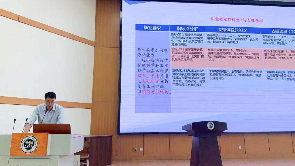学院于2021年9月启动了工程教育认证专业示范课建设交流。参加本次课程建设交流活动的是2021至2022学年第1学期申报示范课建设的课程组,包括离散数学、数据库系统原理及应用、计算机网络、逻辑设计、操作系统等12门专业课程。交流活动中,各课程组负责人分别从课程教学目标设置、毕业要求指标点支撑、教学内容安排以及课程考核评价、持续改进等方面介绍了该课程基于认证理念开展教学活动的情况。