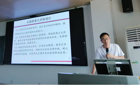 在教学研讨环节,苗茹、张戈、杜晓玉、陈小潘、陈国强、杜莹等6位学院课程思政项目负责老师围绕课程基本开课情况、思政育人目标设计与工程认证的支撑关系、课程思政元素挖掘与教学过程设计、建设成果展示等多个方面展开汇报分享。省教学名师乔保军和执行院长韩道军分别对老师们的精彩汇报进行了点评。韩道军最后还分享了他对集体利益和个人成长关系的理解,并鼓励大家在新学期教学实践中发扬大国工匠精神,热爱教学,全面提高教育教学质量。