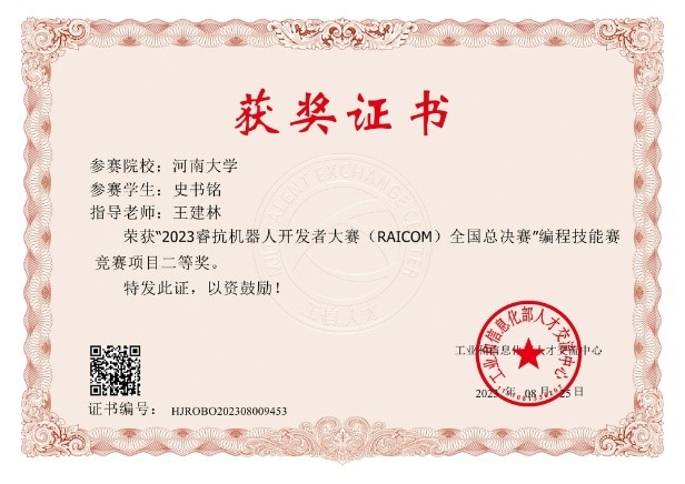 由工业和信息化部人才交流中心、RoboCom国际公开赛组委会联合主办的2023睿抗机器人开发者大赛(RAICOM)编程技能赛全国总决赛于8月18日线上举行。经过一个多月的评审及公示,麻豆社