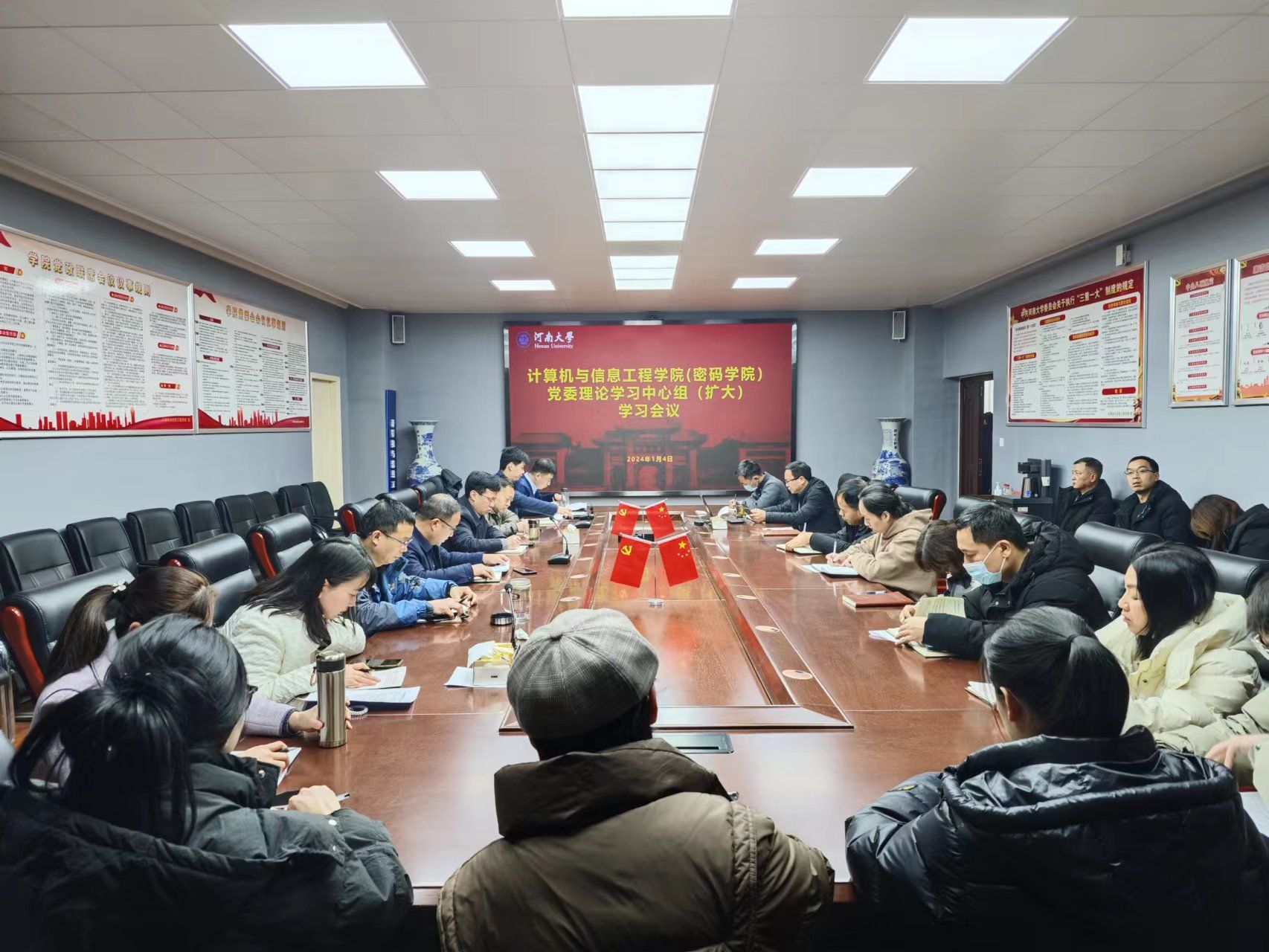 (密码学院)举行党委理论学习中心组(扩大)学习会议。学院领导班子成员、党委委员、两办负责人、党支部书记、系主任和科级机构负责人等参会。会议由党委书记周志民主持。