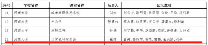 张瑾副教授申报的《计算机科学导论》课程成功入选。这表明学院在实施计算机科学与技术专业工程认证后取得了新成效,在创新创业教育与专业教育深度融合方面取得了新突破。