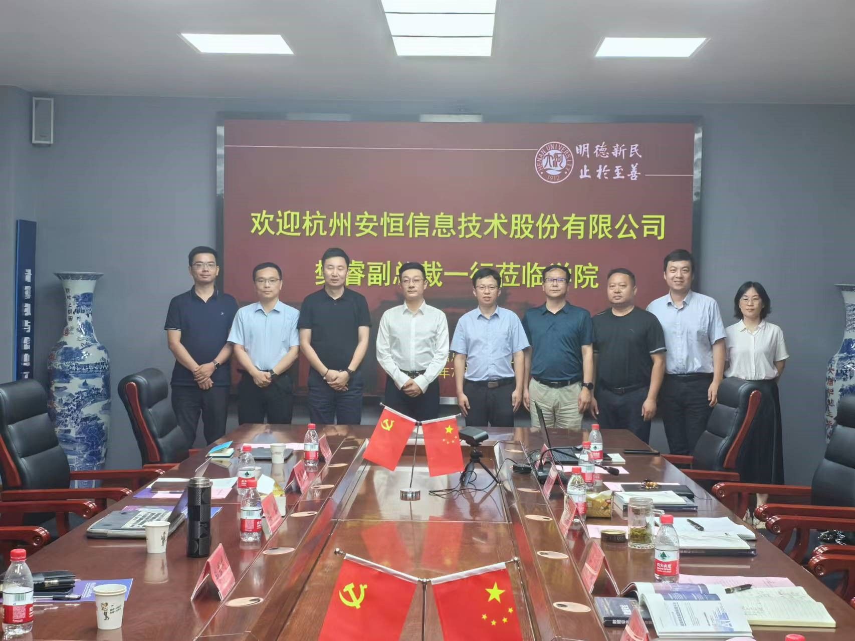 就有关共建联合实验室、课题合作、科技成果转化和校企协同育人进行洽谈交流。学院执行院长韩道军、副院长任小金、左宪禹,信息安全系主任杜晓玉、支部书记张磊等在学院三楼会议室与来访客人进行了座谈交流。