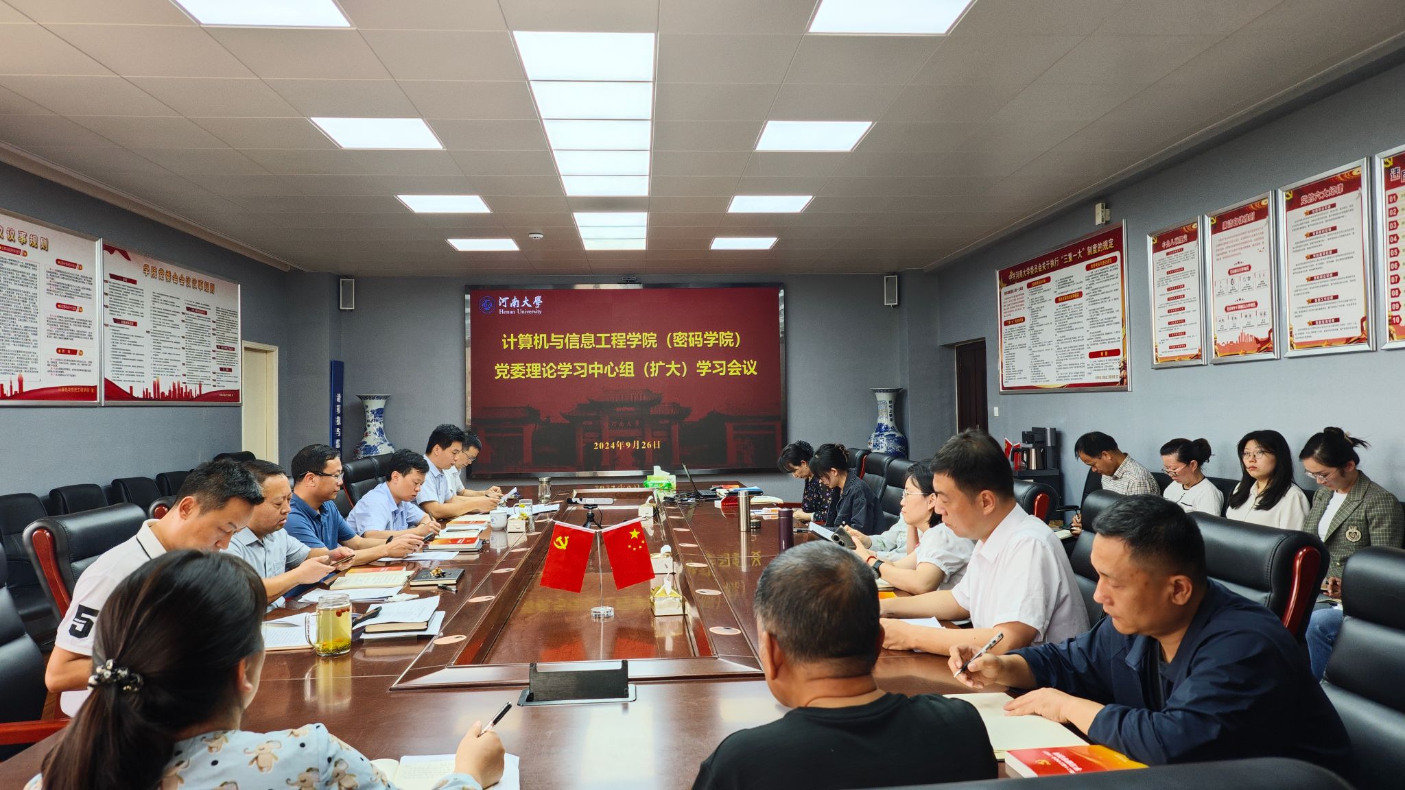 (密码学院)在302会议室召开党委理论学习中心组(扩大)学习会议暨党纪学习教育总结会议。学院执行院长、党委委员、两办负责人、党支部书记、系主任和科级机构负责人等参会,会议由学院党委副书记张大帅主持。