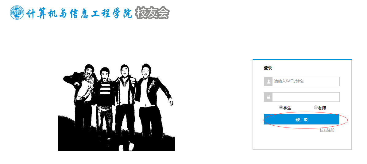 第二步:进入“校友信息平台”,点击右上角“注册”。