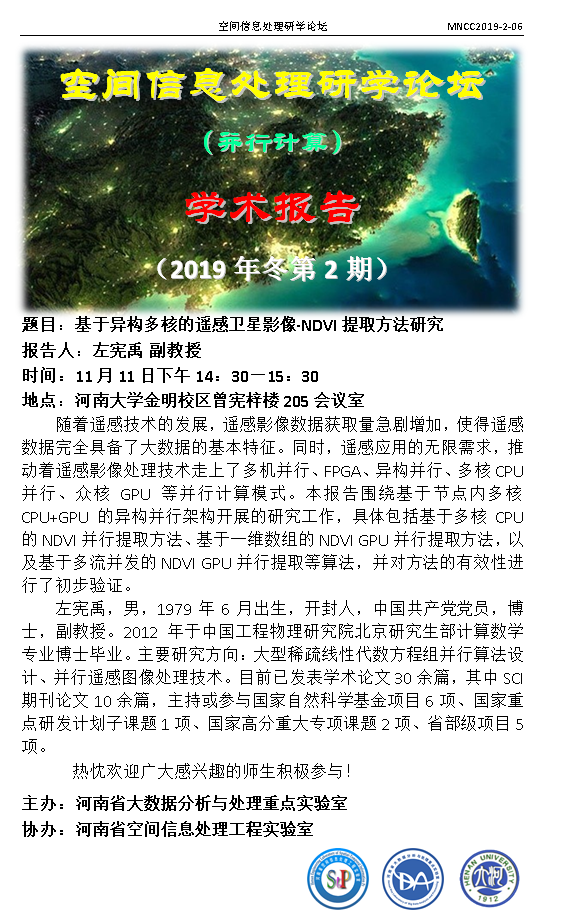 随着遥感技术的发展,遥感影像数据获取量急剧增加,使得遥感数据完全具备了大数据的基本特征。同时,遥感应用的无限需求,推动着遥感影像处理技术走上了多机并行、FPGA、异构并行、多核CPU并行、众核GPU等并行计算模式。本报告围绕基于节点内多核CPU+GPU的异构并行架构开展的研究工作,具体包括基于多核CPU的NDVI并行提取方法、基于一维数组的NDVI GPU并行提取方法,以及基于多流并发的NDVI GPU并行提取等算法,并对方法的有效性进行了初步验证。