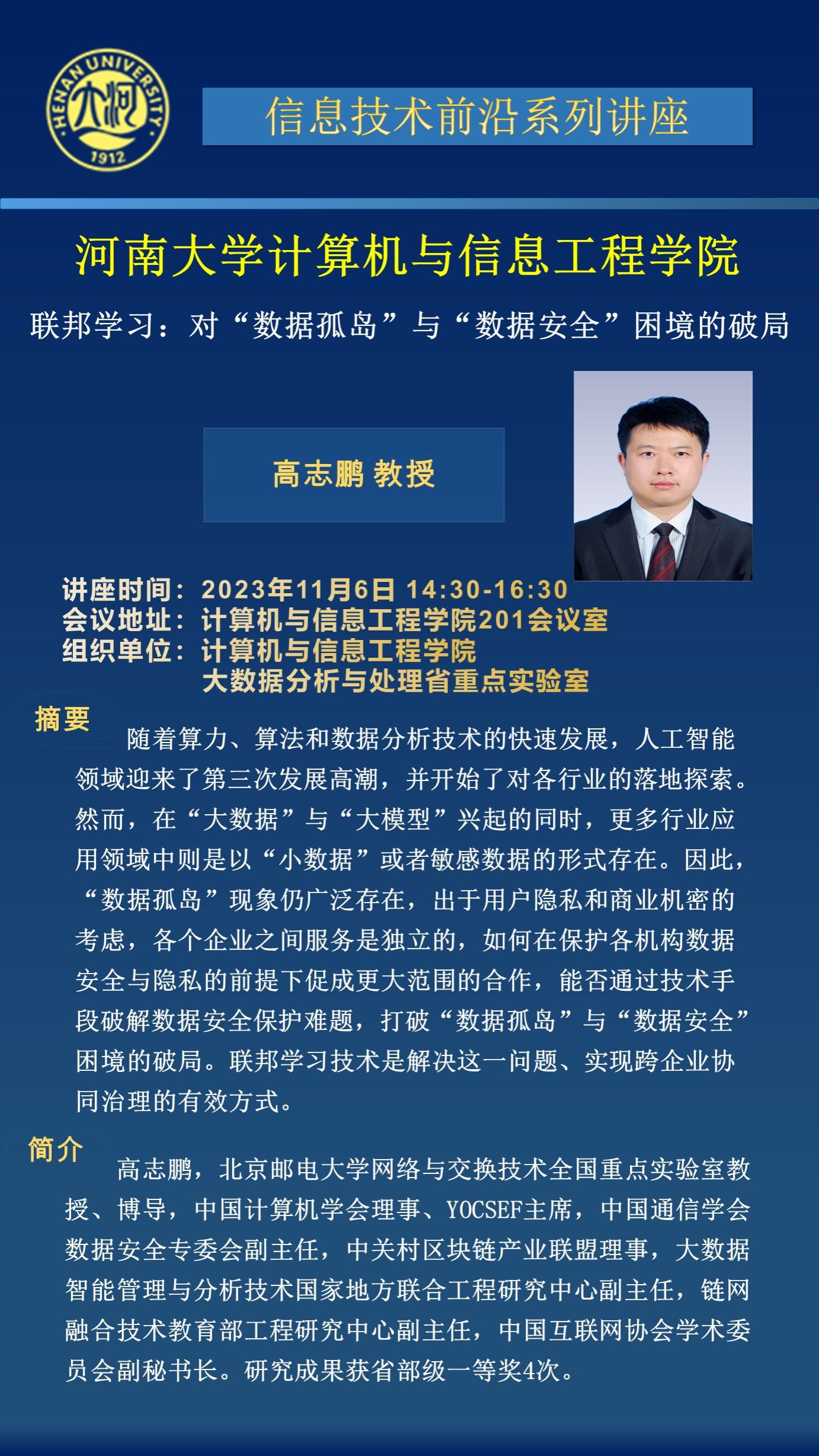 高志鹏:联邦学习_对“数据孤岛”与“数据安全”困境的破局(时间:11月6日)