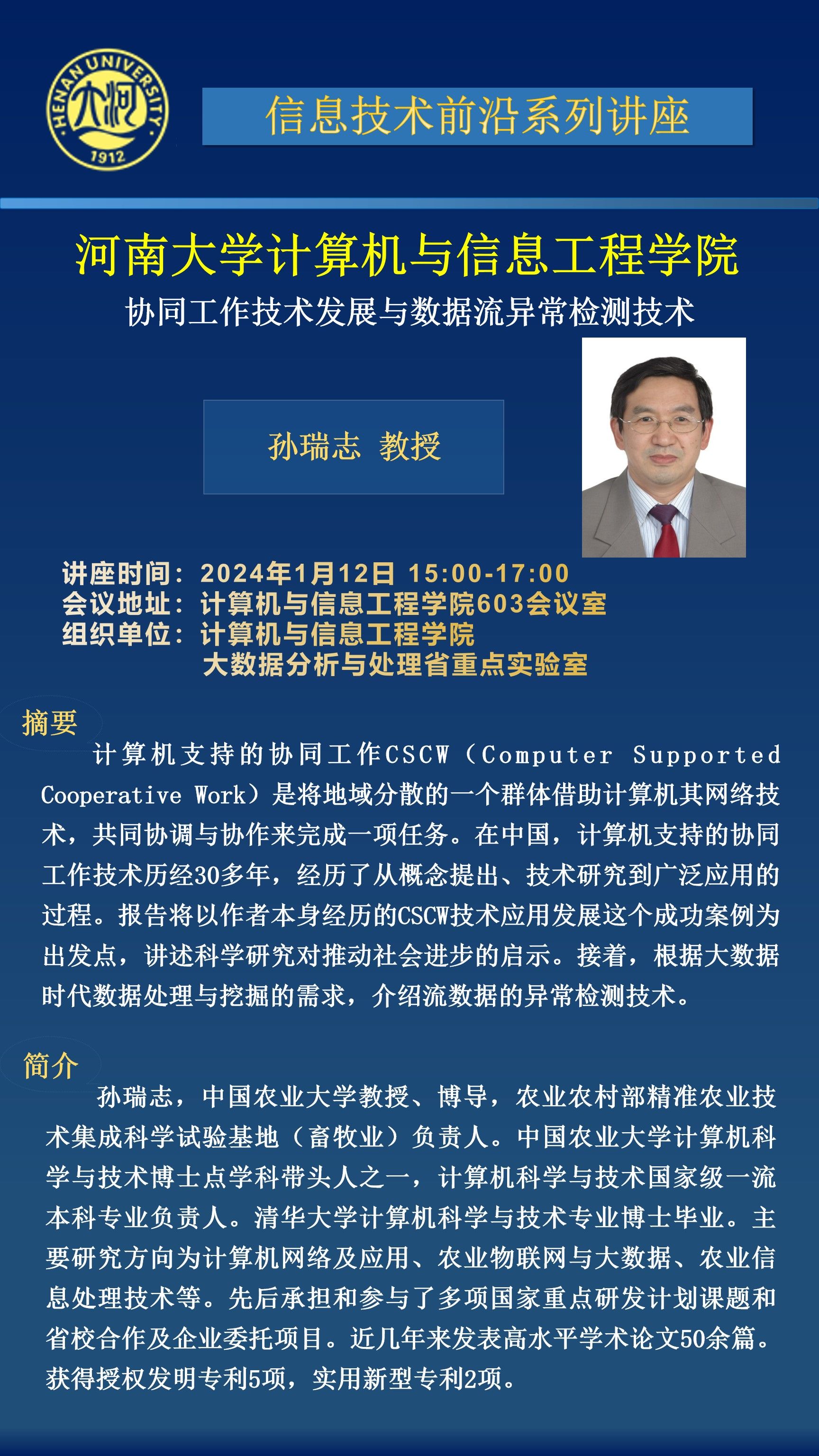 孙瑞志:协同工作技术发展与数据流异常检测技术(时间:1月11日)