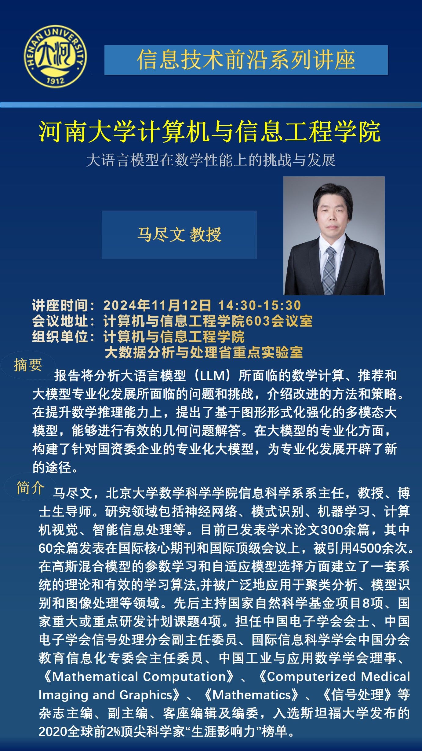 马尽文:大语言模型在数学性能上的挑战与发展(时间:11月12日)