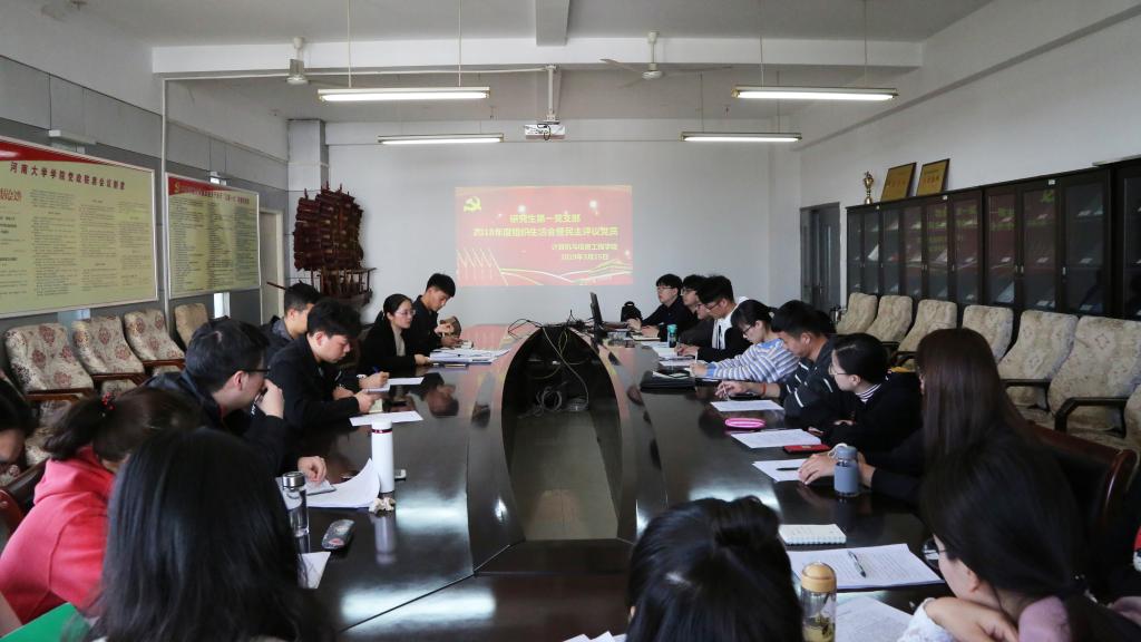 3月15日,研究生第一党支部在院302室召开2018年度组织生活会暨民主评议党员会。组织生活会以学习贯彻落实《中国共产党支部工作条例(试行)》和习近平新时代中国特色社会主义思想为主题,深入查摆支部在政治建设、履职尽责、作风建设方面存在的问题。组织生活会由支部书记郑珊珊主持,支部全体党员参加。