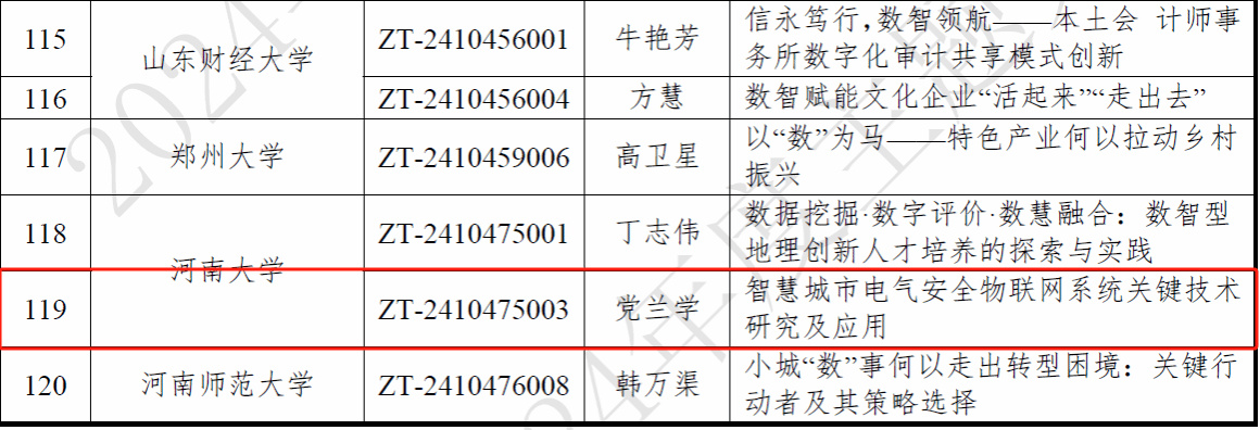 党兰学教授担任首席专家的案例《智慧城市电气安全物联网系统关键技术研究及应用》(项目编号:ZT-2410475003)成功立项。该案例团队还包括乔保军、王春喜、左宪禹、侯彦东和谢毅5位成员。