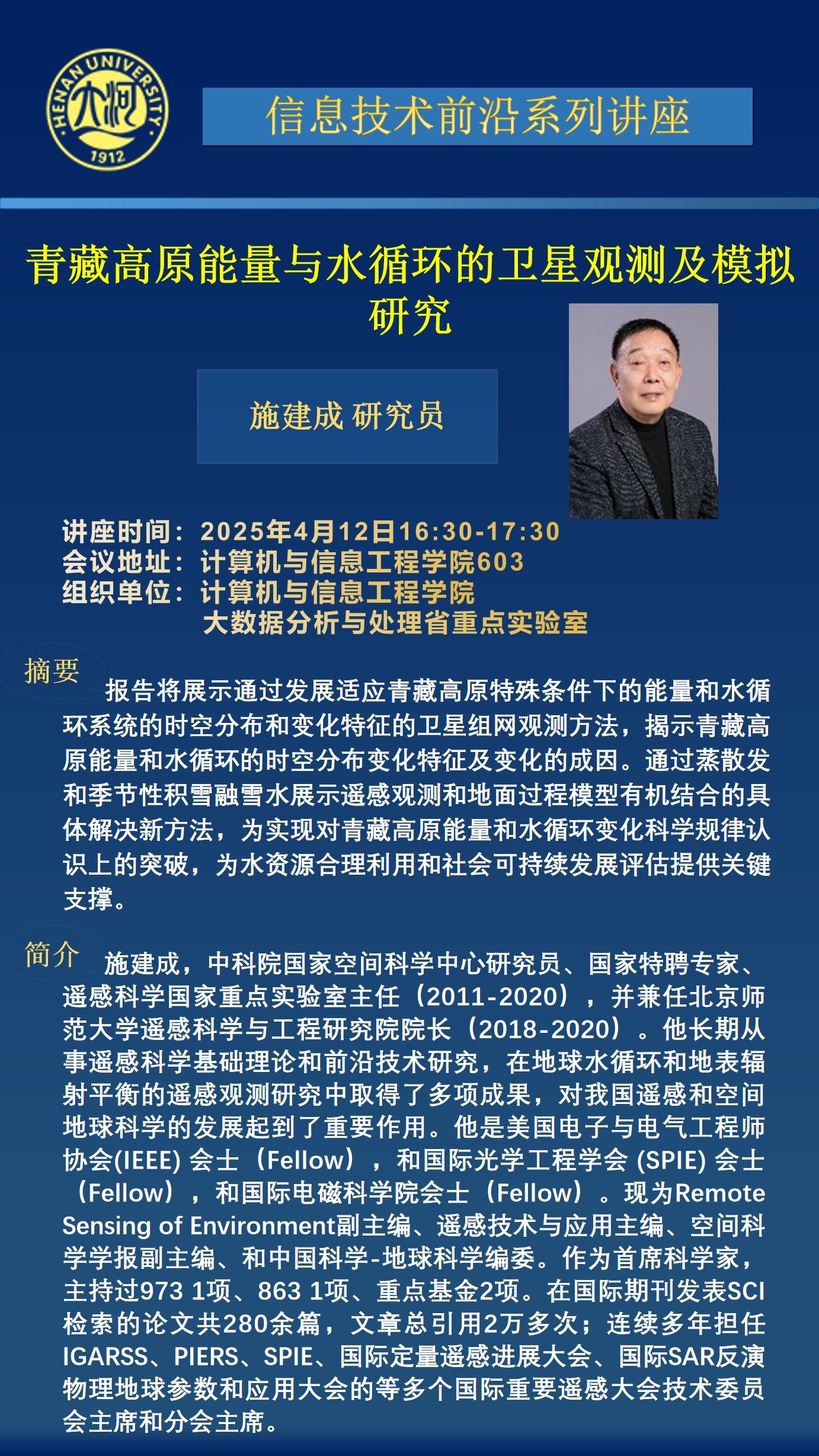 施建成:青藏高原能量与水循环的卫星观测及模拟研究(时间:4月12日)