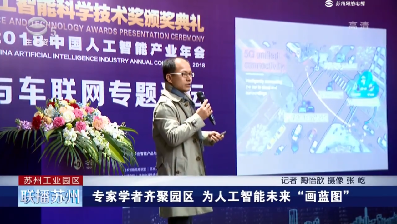 报告结束之后,周毅老师分别接受了环球时报、新华社瞭望周刊、苏州电视台以及AI报道等记者的专题采访,就智能网联汽车生态链发展、车联网V2X技术与智慧交通产业的融合落地等话题进行了讨论,周毅老师针对V2X技术在行业细分领域的应用情况,以港口、园区、矿山等相对封闭区域内车联网应用的典型技术实现为例,肯定了V2X技术的应用前景,并对河南省人工智能三年行动计划以及智能网联汽车的未来发展进行了展望。