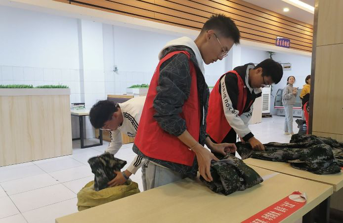 Before the activity officially started, the volunteers made students know the public use of military training uniforms and how to raise funds through online and offline publicity. At noon on The 5th, volunteers stood quietly at the booth and began to collect and register the information of military training uniforms donated by students. On the evening of the same day, the volunteers entered the dormitory building as a group and explained to the students the recycling USES and real places of military training uniforms from door to door on the principle of voluntary not demanding. Students actively donated their military training uniforms, and said: "A good foundation, why not?" . With the help of the students and volunteers, the activity went on smoothly. On the evening of June 6, military training uniforms were sorted, sorted and arranged by volunteers.
