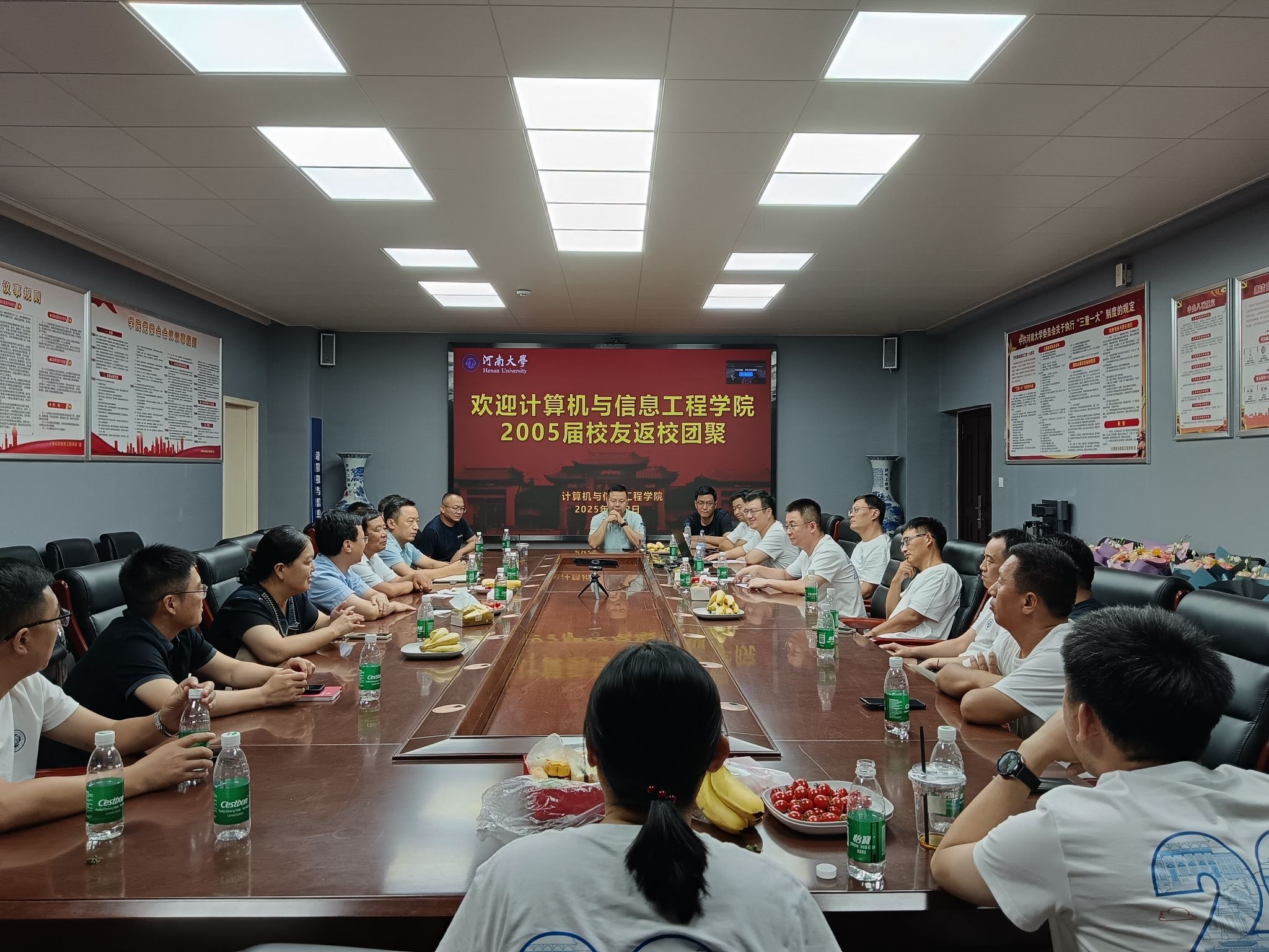 三楼会议室内欢声笑语不断,校友们陆续抵达,尽管毕业已20年,但同窗相见,熟悉的笑脸、亲切的问候瞬间拉近了彼此的距离。校友们先后参观了学院和实验室,看到曾经奋斗过的地方如今焕然一新,校友们既感慨于母校的快速发展,又追忆起当年在实验室熬夜编程、在教室奋笔疾书的点点滴滴。