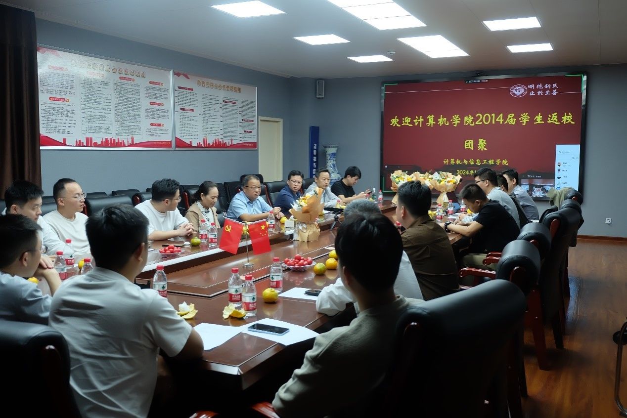 (密码学院)2014届校友回校团聚,重温校园时光,共叙师生情谊。学院党委书记周志民、执行院长韩道军、副院长张勇、2014届部分校友、时任辅导员姚莉和教师代表参加活动。