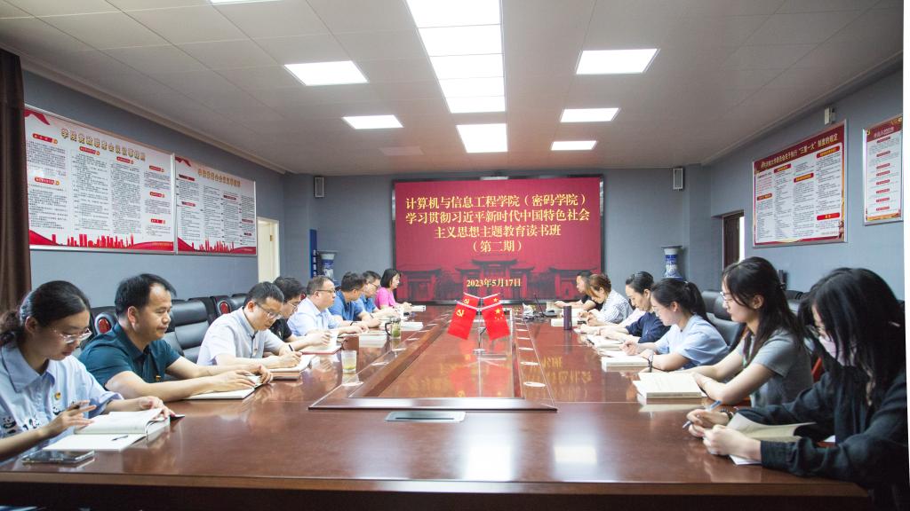 (密码学院)举办主题教育第二期读书班。读书班通过个人自学、集中学习、专题辅导、专题研讨等多种形式相结合,深入学习贯彻习近平新时代中国特色社会主义思想。