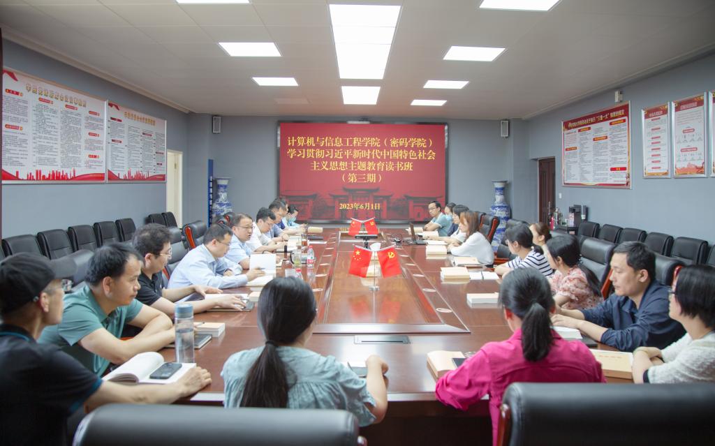 (密码学院)举办主题教育第三期读书班。读书班通过个人自学、集中学习、专题辅导、专题座谈等多种形式相结合,深入学习贯彻习近平新时代中国特色社会主义思想。